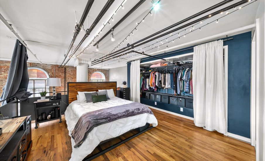 Discover a truly one-of-a-kind residence in Castleberry Hill’s historic arts district - one of the largest lofts in the iconic Peters Street factory conversion. This 3-story corner unit is filled with character and modern convenience, offering 30’ ceilings, oversized palladium windows, and original exposed brick and heart pine floors that showcase its industrial charm. Step inside through a gallery-style foyer and into a dramatic open layout, where natural light pours through soaring windows and highlights the spacious living and dining areas. On the main level, a custom wine-barrel chandelier anchors the separate dining space, while the updated kitchen features granite countertops, stainless steel appliances, breakfast bar, and pantry. The main level overlooks a cozy living room, creating an open vertical floor plan. The top-level primary suite feels like a retreat, complete with a spa-inspired ensuite bathroom complete with double vanity, step in shower and free standing tub. A second bedroom on the lower level doubles as a home office, guest room, or fitness space, with a full bathroom for flexibility. Secure entrances, private covered parking, dog park, and a walkable neighborhood just steps from shops, restaurants, and Mercedes-Benz Stadium makes urban living effortless. Recent upgrades include a brand-new HVAC system and newer water heater. A transferable, fully integrated Google Smart Home system connects a Nest thermostat, Yale lock, multicolor Philips Hue lighting, window shade and ceiling fan controls, and smoke/CO2 detectors. This is not just a loft - it’s a lifestyle in the heart of Atlanta’s most vibrant historic district.